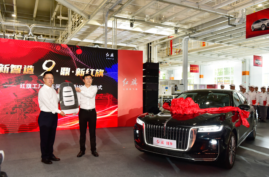 7月9日,主題為“質(zhì)·領(lǐng)·新智造 9·鼎·新紅旗”的紅旗工廠新車間交付暨紅旗H9量產(chǎn)儀式在紅旗工廠舉行。新車間的如期投產(chǎn)和紅旗H9正式量產(chǎn),將為完善紅旗產(chǎn)品布局、達(dá)成全年20萬輛目標(biāo)、推進(jìn)紅旗品牌實(shí)現(xiàn)高質(zhì)量躍遷成長提供強(qiáng)有力支撐。
